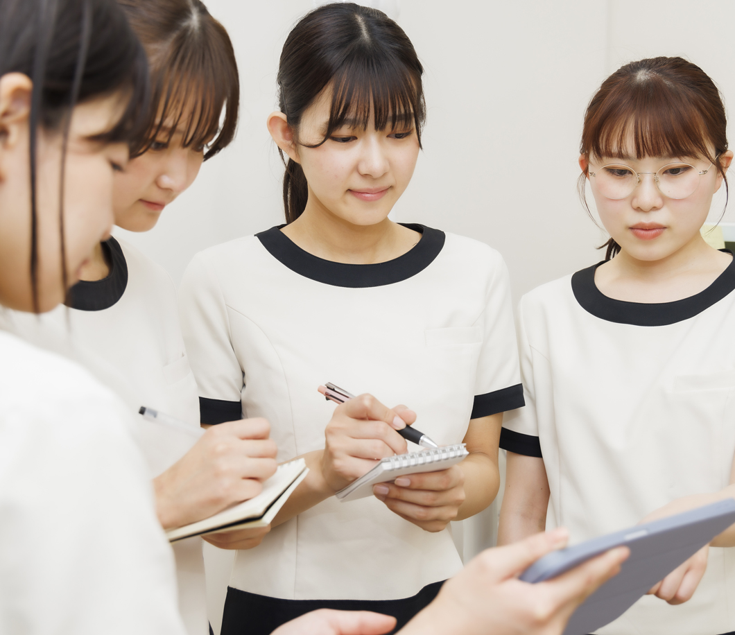にじいろ歯科では、マニュアルに沿った項目に関して先輩がマンツーマンで指導します。